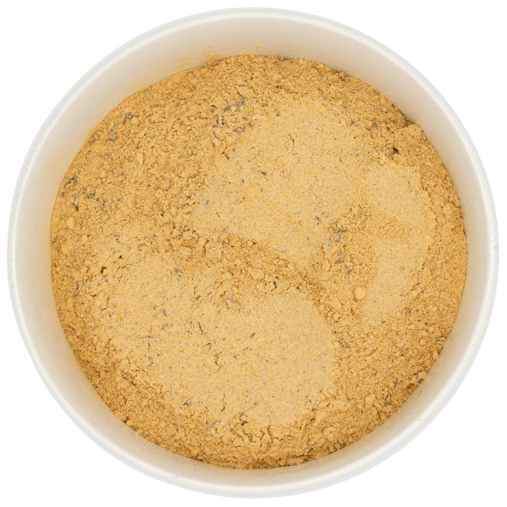 Steinsalz, Shiitake Pulver, Pilz Extrakt Mischung (Pilz Pulver, Salz, Pilz Extrakt, Calcium, Vitamin B), Zwiebel, Karotte, Paprika, Knoblauch, Petersilie, Kurkuma, Thymian